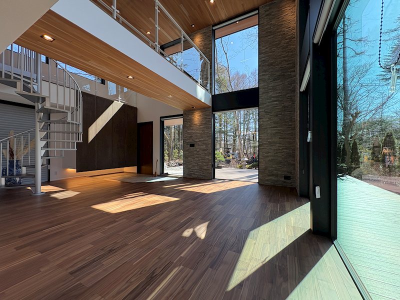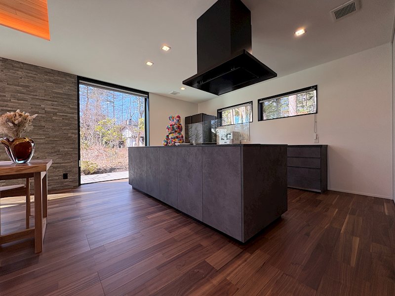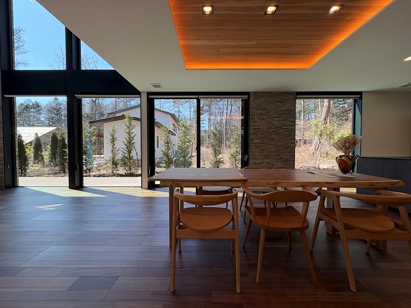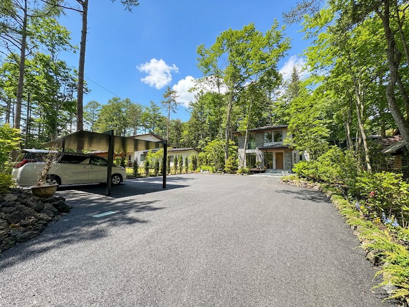 オーナー様がこれはという場所を選んでお建てになられた場所です。春、初夏、それぞれの木々の新緑から紅葉の鮮やかさが想像しただけでも心が躍るような素敵な場所でありつつ、街にも大変出やすいこれ以上ないロケーション。リビングダイニングから見える景色はは紅葉をはじめとした沢山の木々を感じられ非日常の空間を楽しめることでしょう。きっと快適な別荘ライフをお過ごしいただけるでしょう!軽井沢らしい自然を堪能できるデザイナーズフラットハウスをぜひご覧ください!!