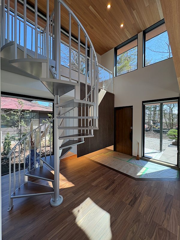 玄関先にある螺旋階段で上階へ。