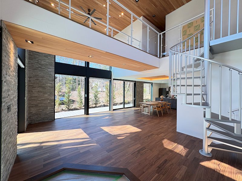 軽井沢の中でも、上ノ原ロイヤルプリンス通りは皇族にゆかりのある土地で、以前からこのような場所に土地があればと探していたところ、縁あって取得できることが出来たため、建てることができました。建築のコンセプトは紅葉を存分に感じられる家でした。家の特徴である高断熱の建物はオールシーズン快適に利用できると思います。良いご縁があれば嬉しいです。