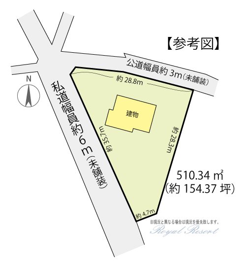 | 主な接道 | 公道、北、幅員:3m、接道長さ:28.8m