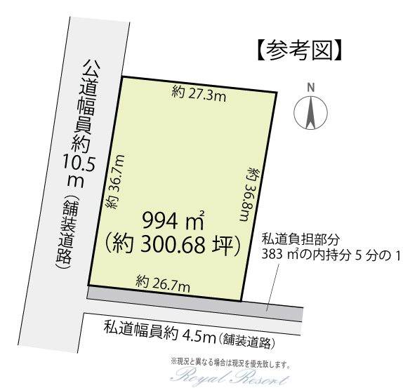 | 私道負担面積 | 面積 : 383.00m² 持ち分:1/5 | ||