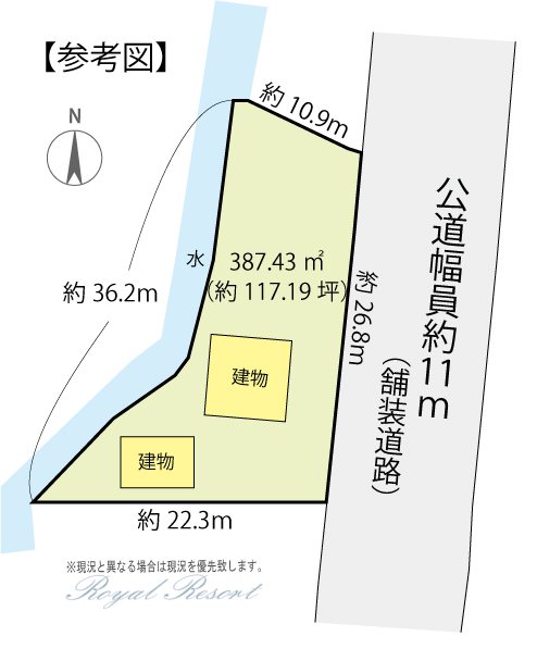 | 建物面積 | 42.90m² (12.97坪) | 土地面積 | 387.43m² (117.19坪) |