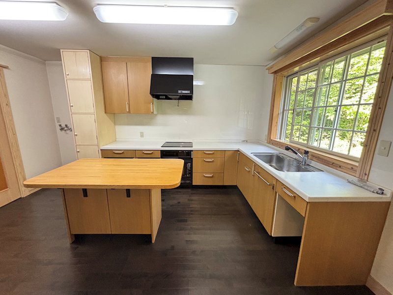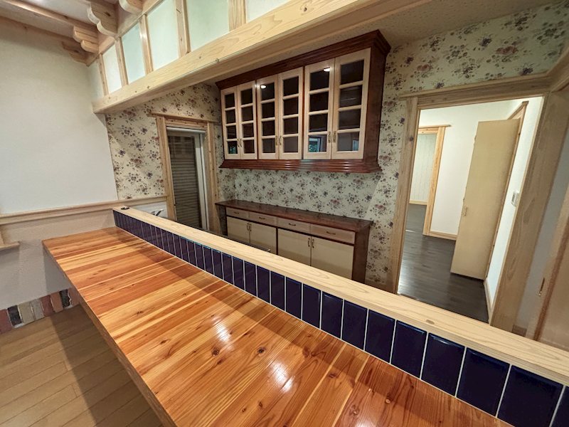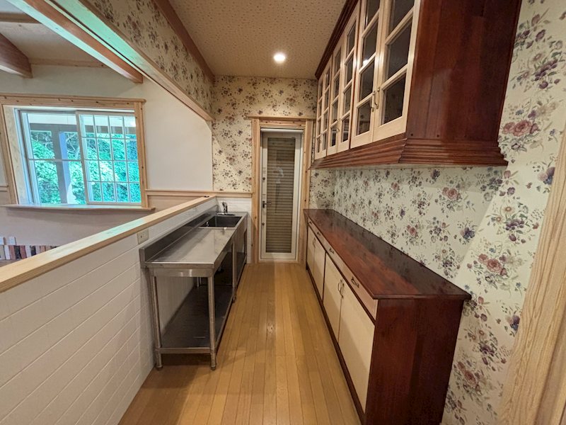 カウンターの中には水回りを備えお庭でのBBQの時などとても便利な仕様ですね