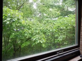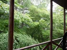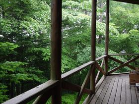 ウッドデッキからの景色。閑静な別荘地で静かに過ごせます。