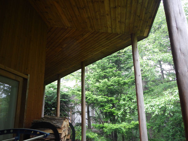 ウッドデッキからの景色。閑静な別荘地で静かに過ごせます。